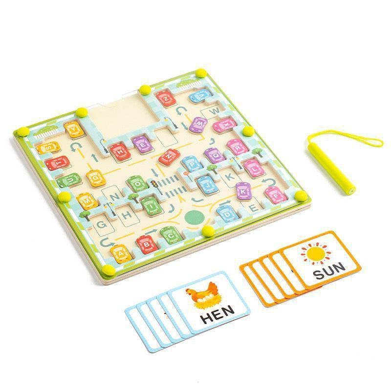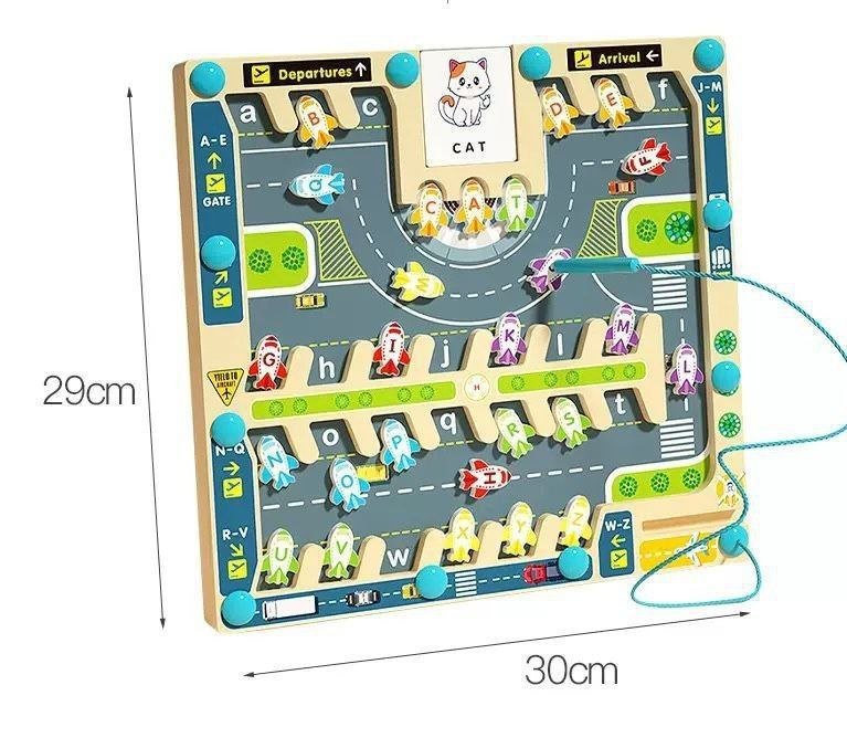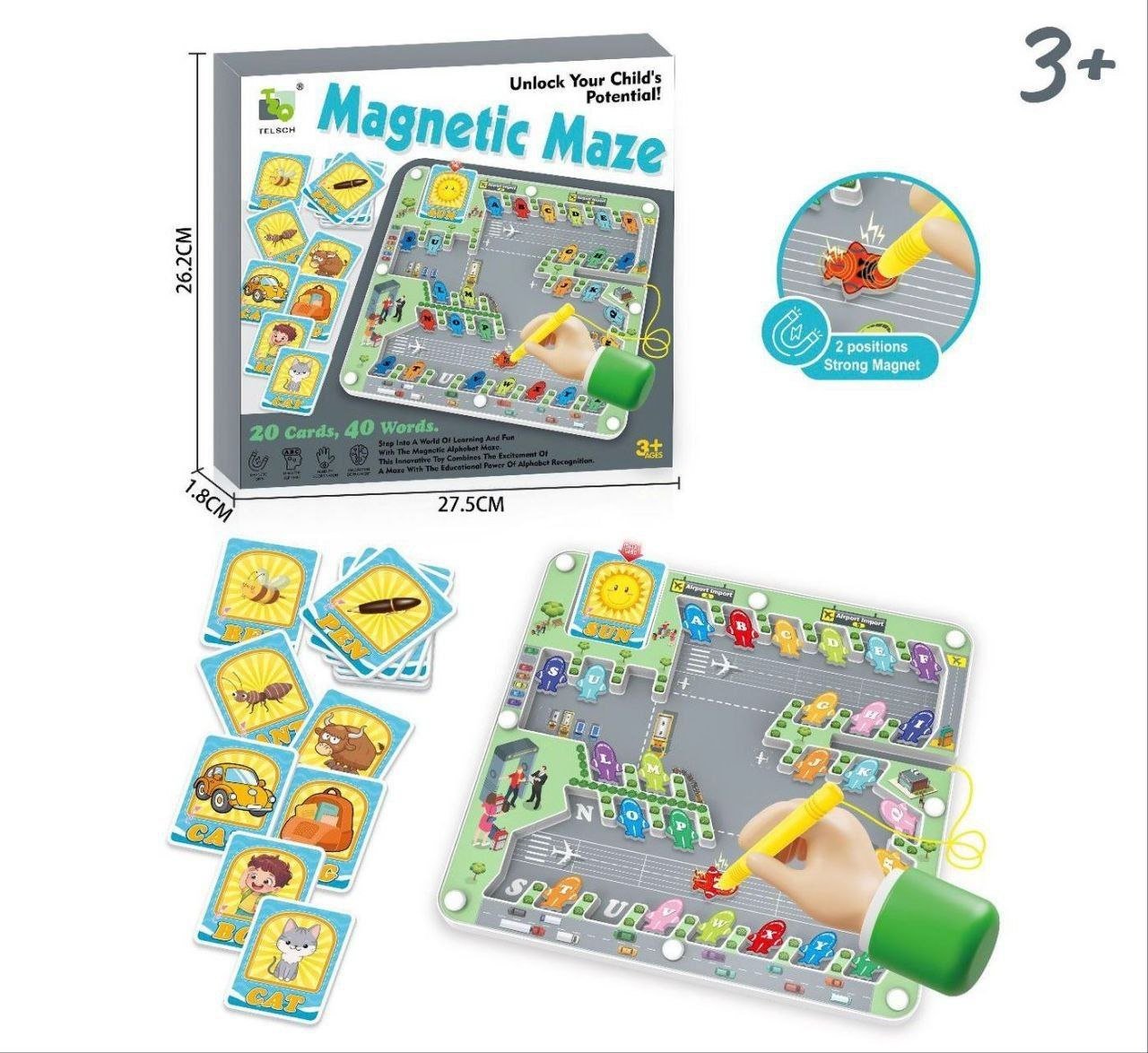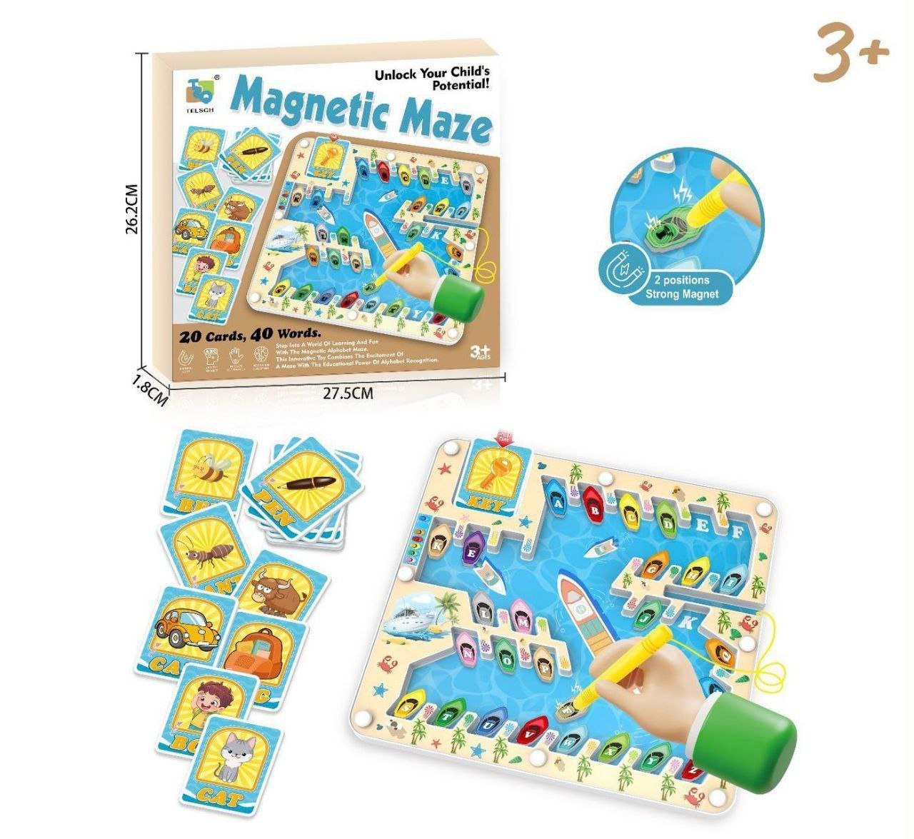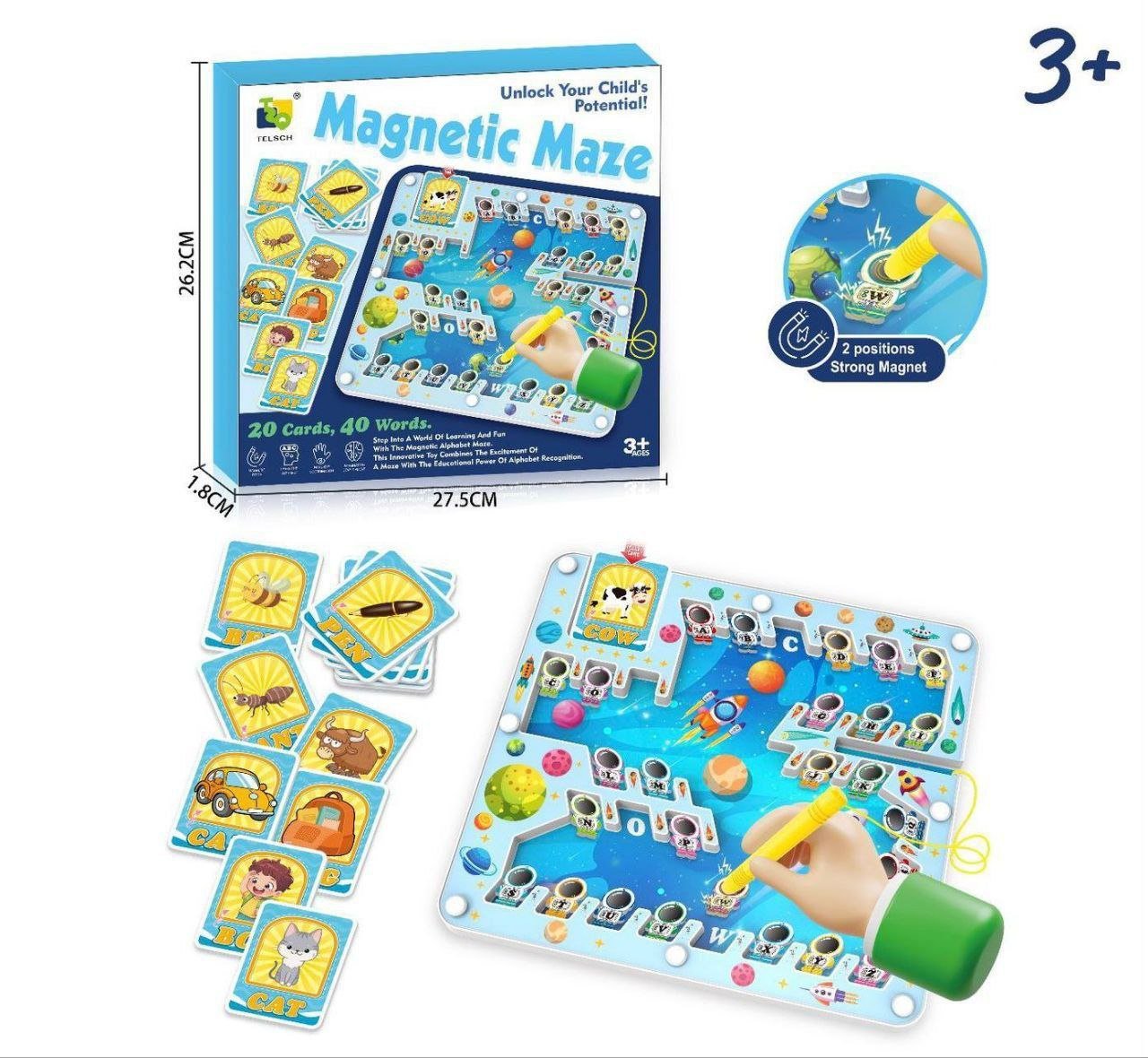 🎴 内含:20 张图文卡片,40 个单词 🧲 玩法: 1. 选择一张带有单词和图片的卡片。🃏 2. 使用磁性笔引导卡片穿过迷宫。✍️ 3. 将字母连接起来,组成正确的单词。🔤 帮助孩子认识字母、联想单词,寓教于乐。🎓💡