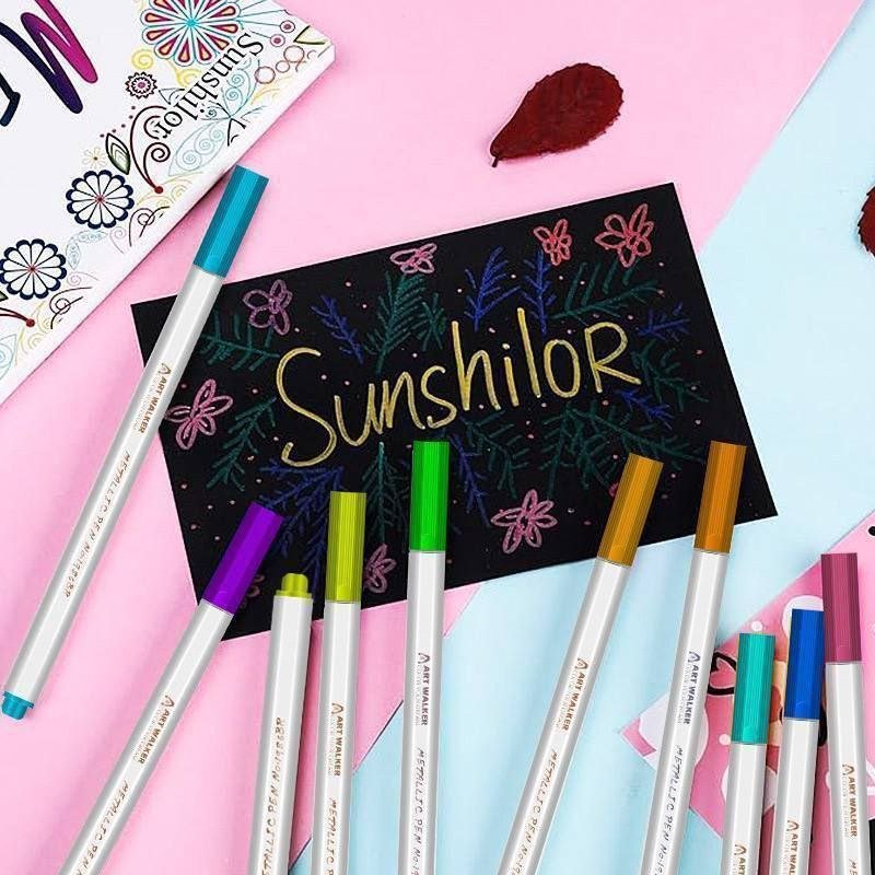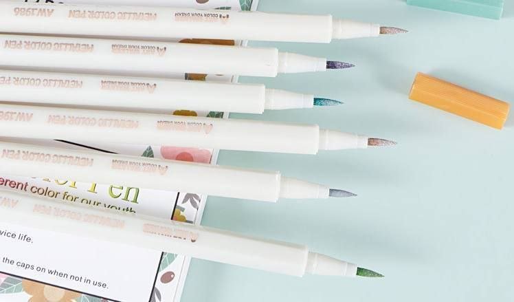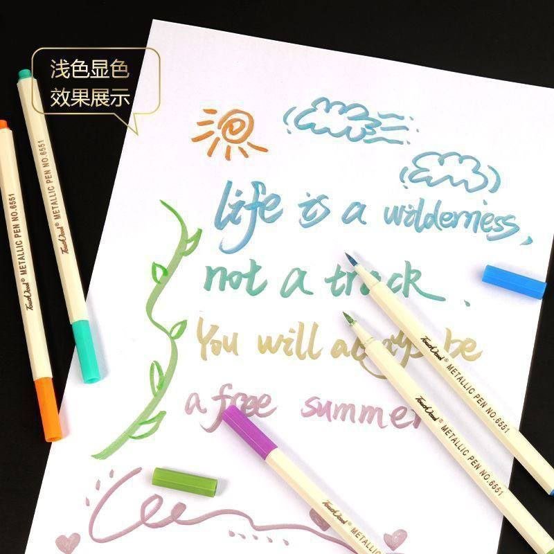 Cajita de Marcadores Metálicos Punta Pincel: 🎗️🖌️🌈✨ (12pcs/paquete)