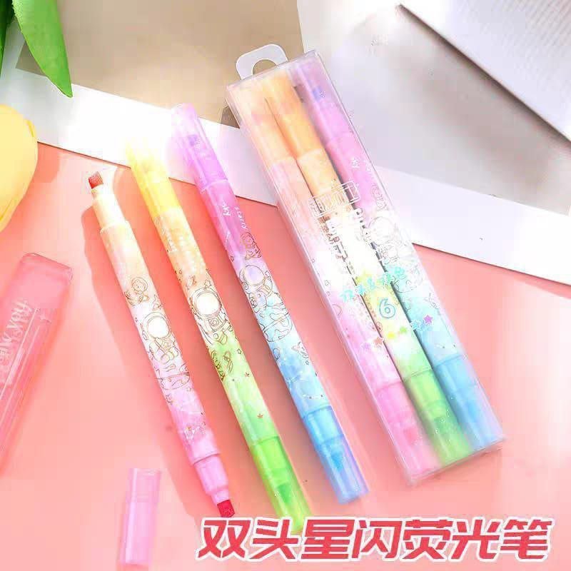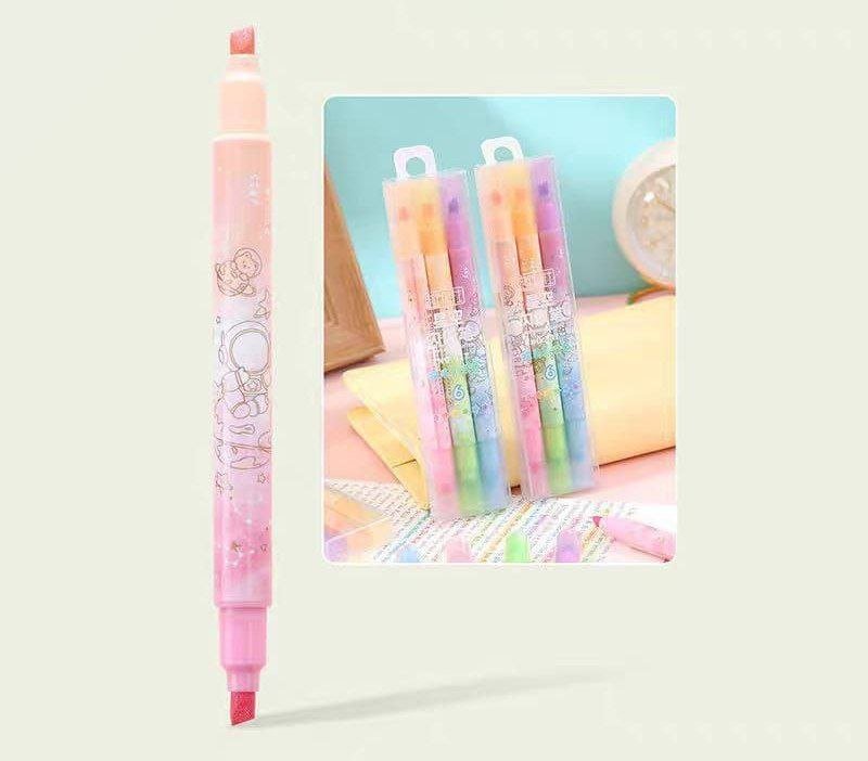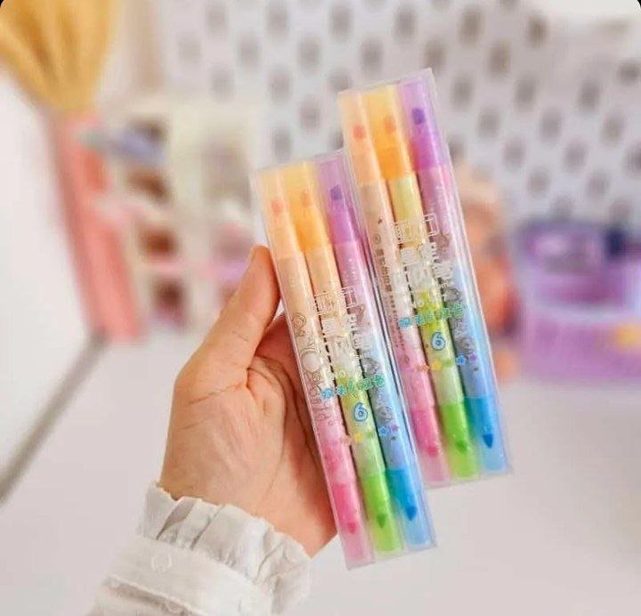 Paquete de Resaltadores brillosos colores dobles pasteles:🖍️🌈✨(3pcs/paquete)