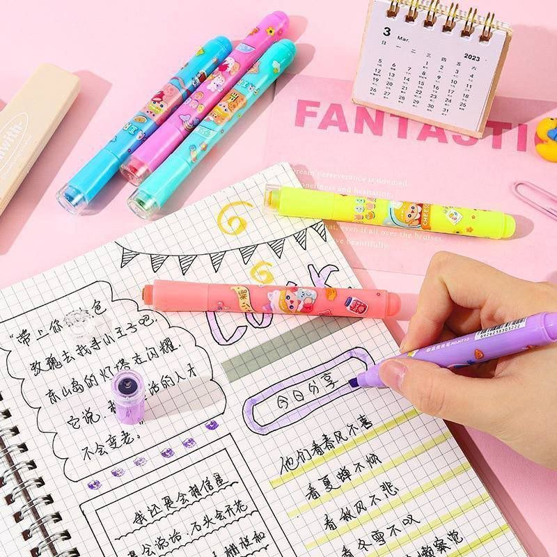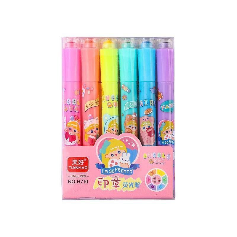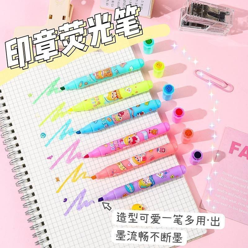 Paquete de Resaltadores colores pasteles incluye sellos decorativos:🖍️🌈💮✨(6pcs/paquete)