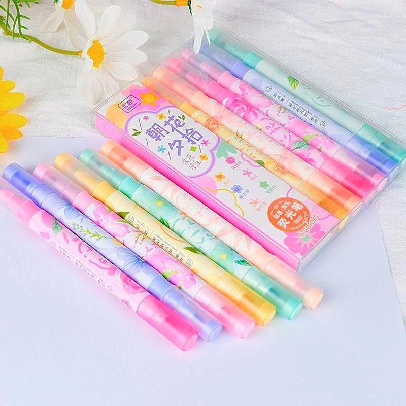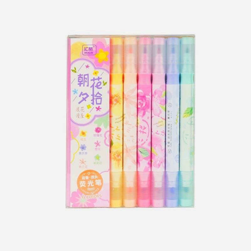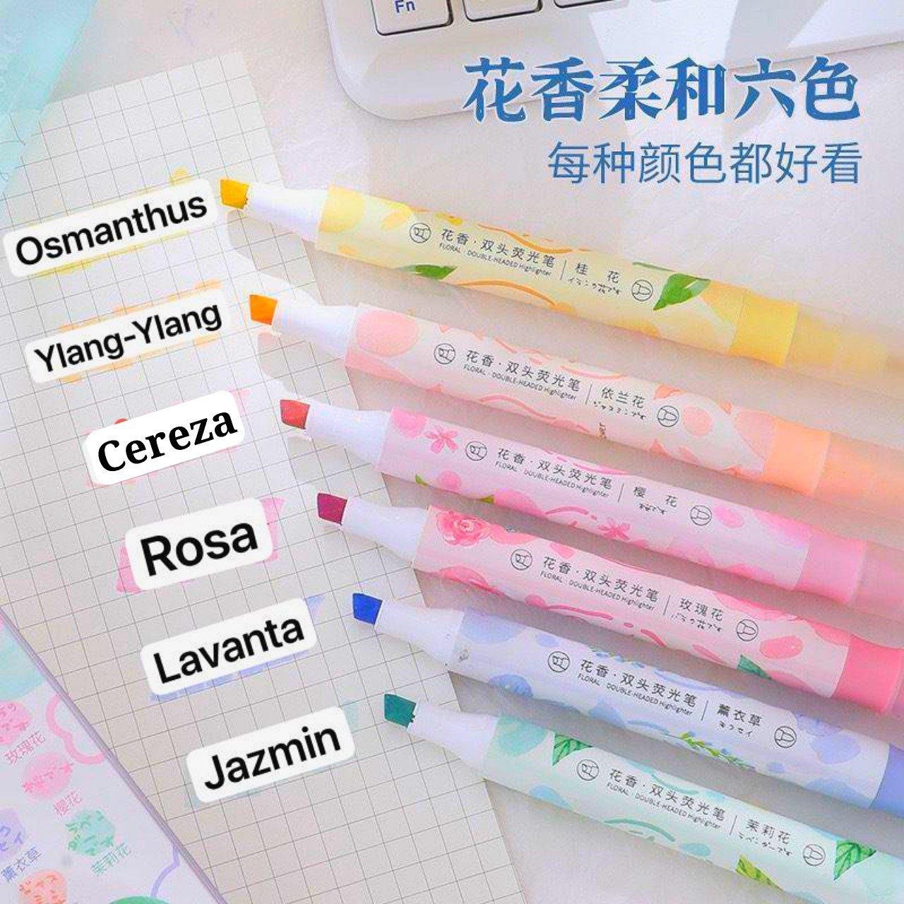 Resaltador con aroma de flor 6pcs/paquete 🌹🌸🪻 doble punta ( fina y gruesa) con 6 color pastel y aroma de flor