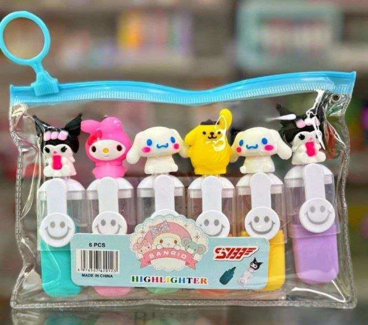 Paquete de Resaltadores de surtidos personajes , Sanrio’s ,robots ,Kitty, niña …7 modelos pasteles:✍🏻🌈✨💖 (6pcs/paquete)
